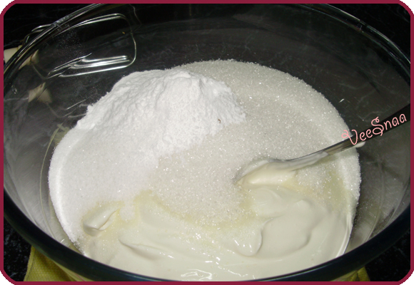 Смешиваем сметану с сахаром, я еще добавила ванильный сахар и загуститель сливок