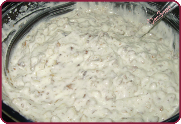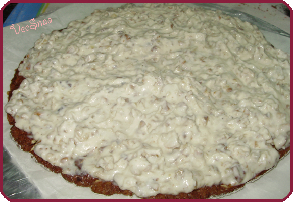 7. Добавляем сметану (тут я чуть спортачила 😦 я забыла что мне нужна сметана в тесто и все убухала в крем, пришлось добавлять в тесто сметану из крема, с орехами, НО это НЕ ПРАВИЛЬНО!!!)