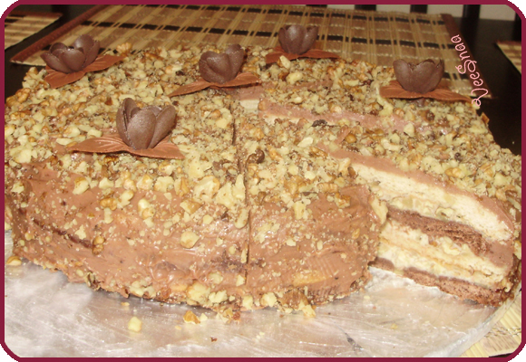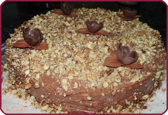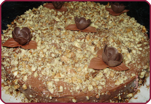26. Украсить тортик можно по желанию, я купила шоколадные цветочки от доктора Откера 🙂