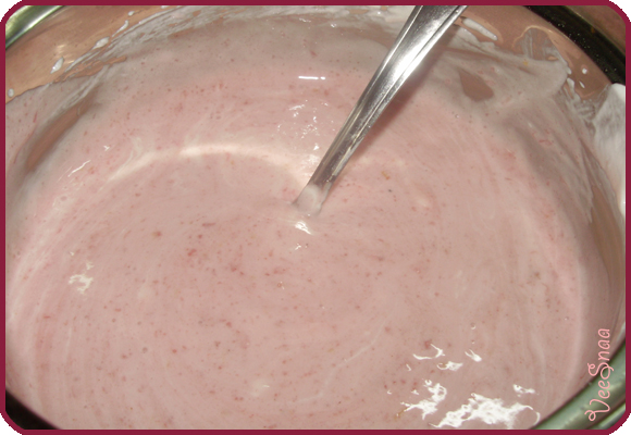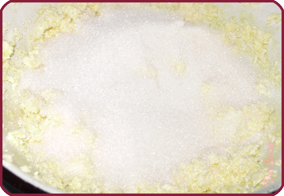 5. В отдельной посуде смешиваем сметану с сахаром, я еще добавила 2 пакетика загустителя для сливок от Dr. Oetker. Хорошо взбиваем миксером, почти до полного растворения сахара и убираем в холодильник.