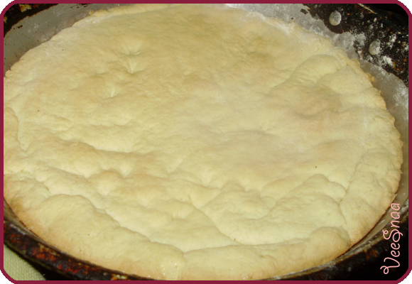 Сковороду или форму для выпечки присыпаем мукой. Аккуратно переносим в нее наш корж и выпекаем у ЗАРАНЕЕ разогретой до 180 ºС духовке коржи, примерно 20-25 минут. Они должны пропечься, но не пересохнуть