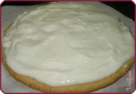 Первый корж промазываем сметанным кремом. Использовав примерно половину массы