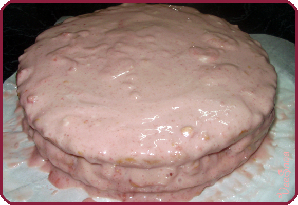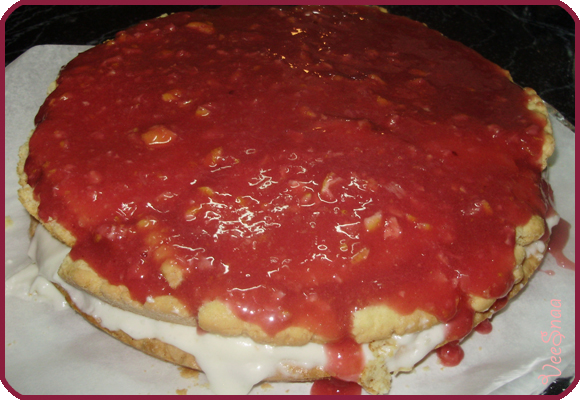10. Второй корж промазываем клюквенным (смородиновым кремом) использовав также половину массы