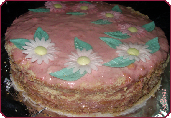 14. Перед подачей убрать излишки крема, по желанию кроя можно обсыпать крошкой от печенья
