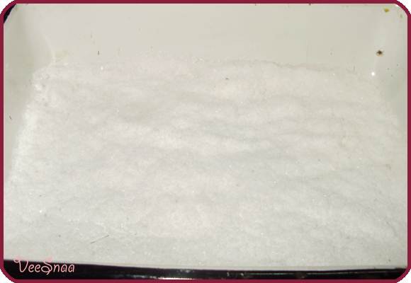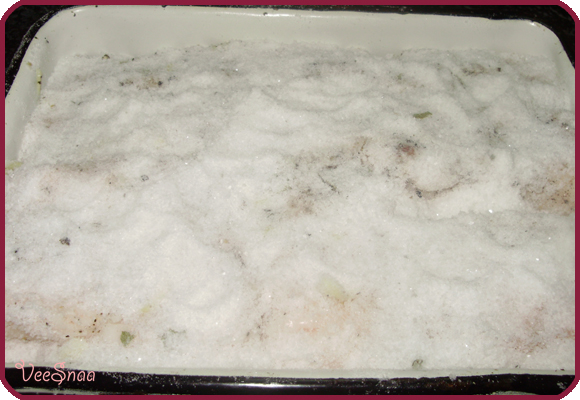 2. В глубокую эмалированную плоскую латку высыпаем каменную соль слоем 1- 1,5 см.