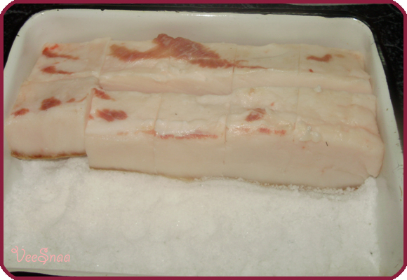 10. Просыпаем сало оставшейся солью, засыпая ее обильно в разрезы