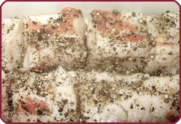 8. Посыпаем сало молотым перцем, стараясь чтобы он обязательно попал в разрезы