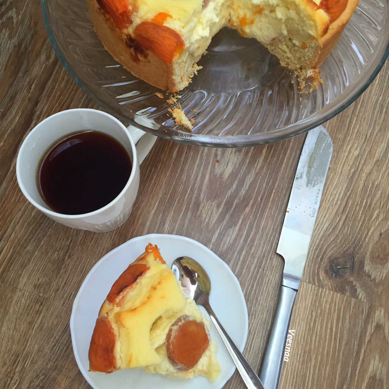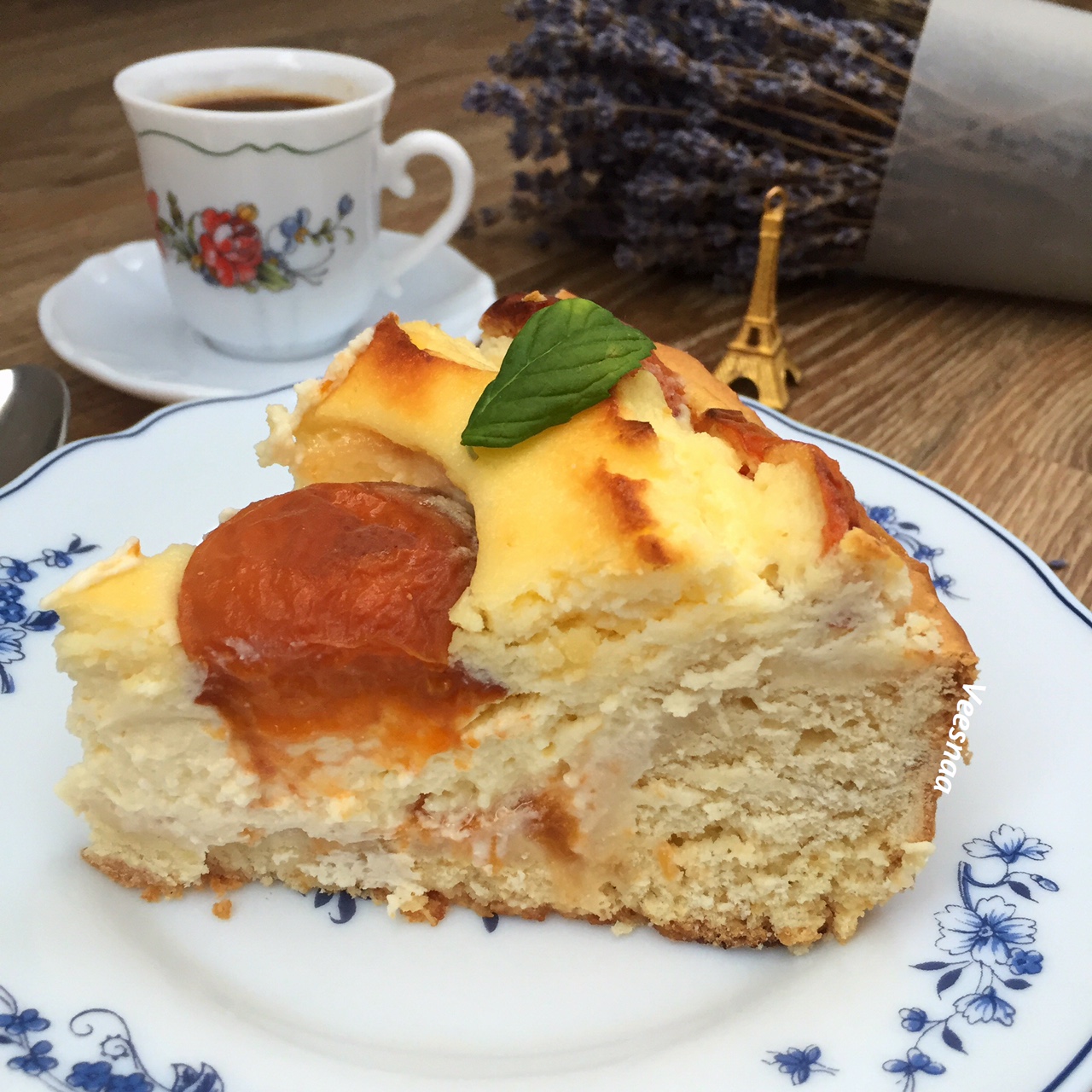 На самом деле я уже пекла страсбургский пирог, правда тогда он был со сливами. Сейчас мне надо было срочно утилизировать абрикосы, и я решила повторить свой пирог, только с легкими изменениями. В этот раз возни с ним гораздо меньше. Правда, в этот раз муж сказал, что он напомнил ему запеканку на тесте. Слишком уж я взбила творог и он стал похож на суфле. Но и в этом есть своя прелесть. Думаю, что буду повторять его еще на раз, с персиками, яблоками и можно попробовать даже с черной смородиной или грушей. А почему бы и нет? Но пока у нас, на старте летнего сезона, абрикосовый пирог.