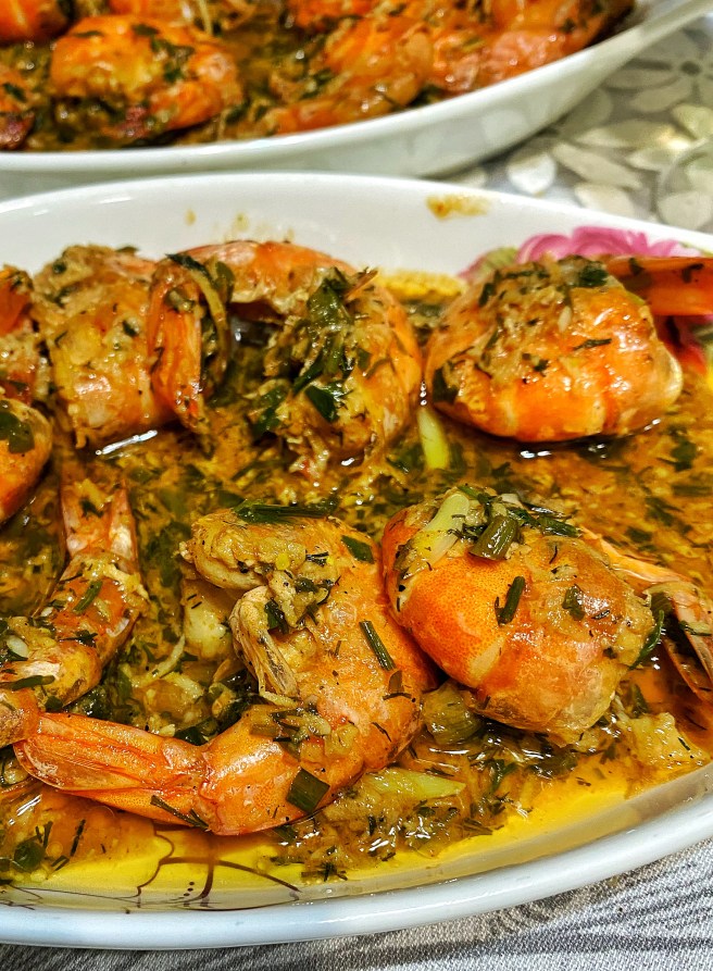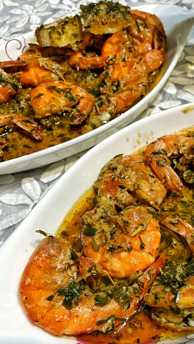 10. Выкладываем креветки на блюдо и поливаем их оставшимся на сковороде соусом.