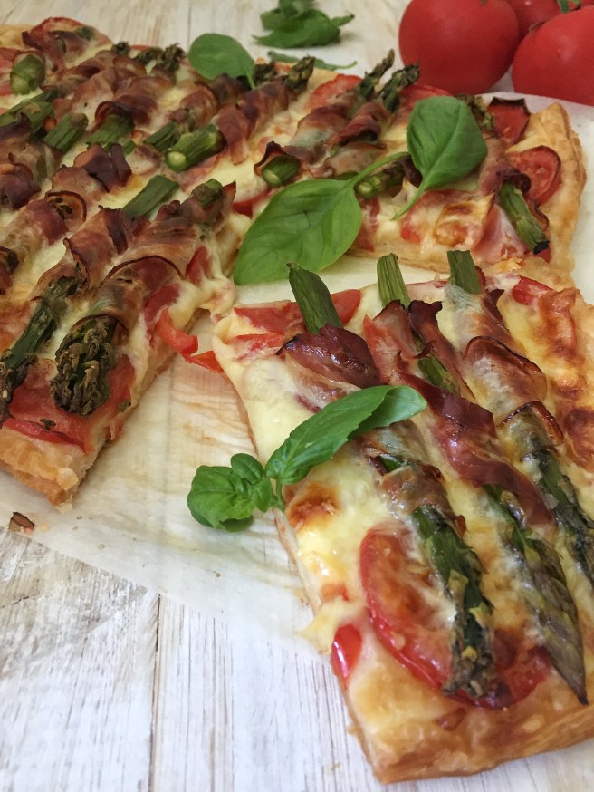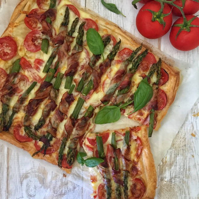Самое долгое в этом рецепте разморозить тесто, и то, если есть микроволновая печь, то этот процесс займет всего несколько минут. Дольше ждать пока все приготовиться. Еще нюанс, что этот пирог все таки сезонный. Потому что в нем присутствует спаржа, но думаю, что ее можно заменить на стручковую фасоль, например, или вместо нее вообще выложить грибы или брокколи. Я даю вам идею, которую в первый раз вы можете повторить или проявить фантазию окунуться в омут экспериментов.