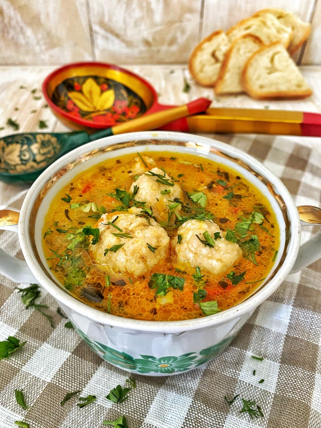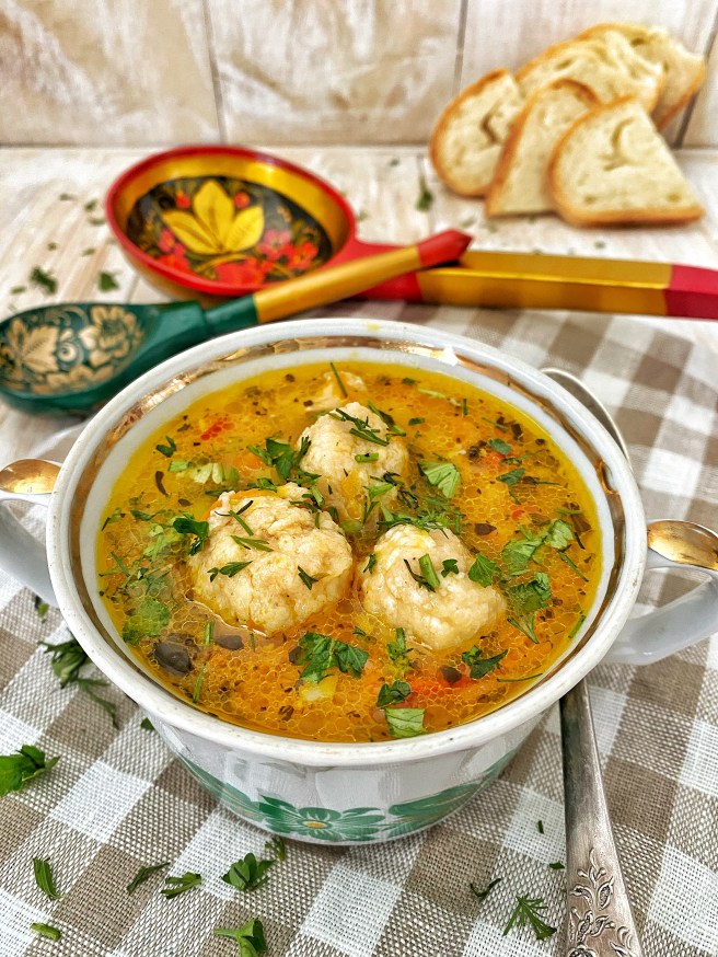 Купив все ингредиенты и мы приступили к волшебству приготовлению. В процессе приготовления мама была похожа на алхимика. Она порхала по кухне, вдыхая ароматы, пробуя пропорции и выводя идеальный вкус. Через какое-то время суп с фрикадельками из куриного фарша наконец был готов. Дав ему часик настояться, а всем ингредиентам соединится мы сняли пробу. И, скажу я вам действительно, фрикадельки получились нежнейшими и сочнейшими. Я даже подумала, что это фарш можно брать за основу котлеток. И даже в на следующий день, после разогрева они будут первозданно воздушнами.