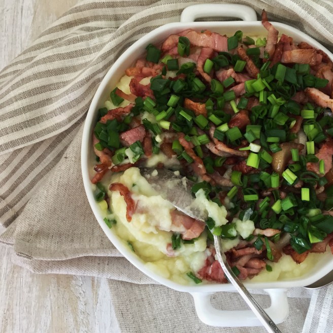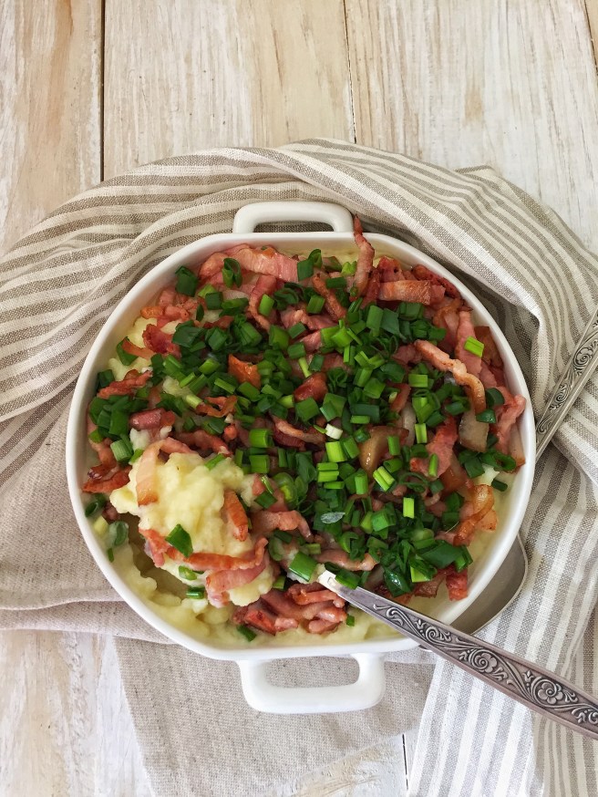 Этот рецепт пюре – рецепт из девства. Я его обожала всегда. Особенно когда страдала мегренями, а страдала я ими, надо сказать постоянно. Мне казалось, что все пару ложечек такого пюре способно излечить любую головную боль. Особенно если добавить туда яблочко и морковку. Но сегодня без этого. Сегодня мы добавим прекрасный кусочек бекона и для контраста зеленый лук. А за основу возьмем классический вариант картофеля по-немецки. Только наслаждение и ничего больше.