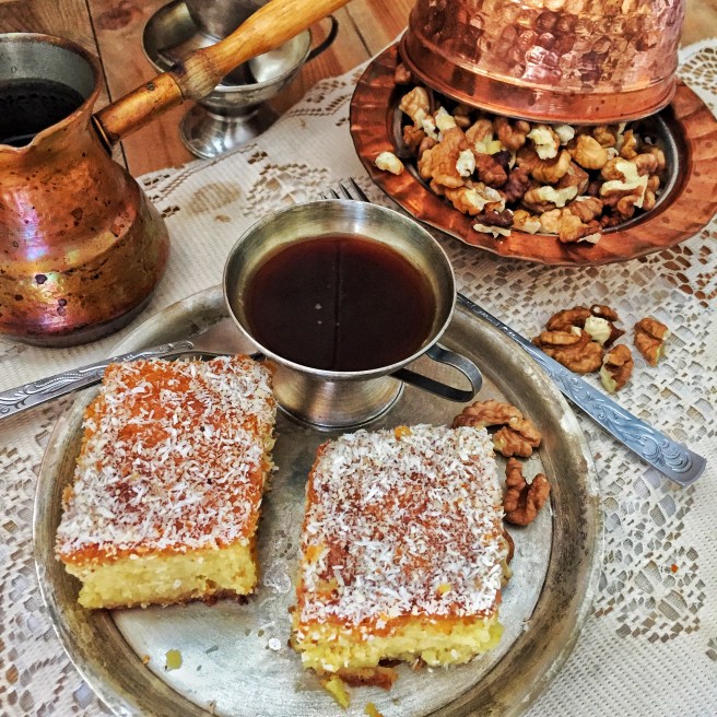 Кстати, про Эгейское море, помню, что видела этот вариант ревани в Греции, их там вообще миллион миллиардов видов. И они не скрывают, если какой-то из вкусов позаимствован у турецких соседей.