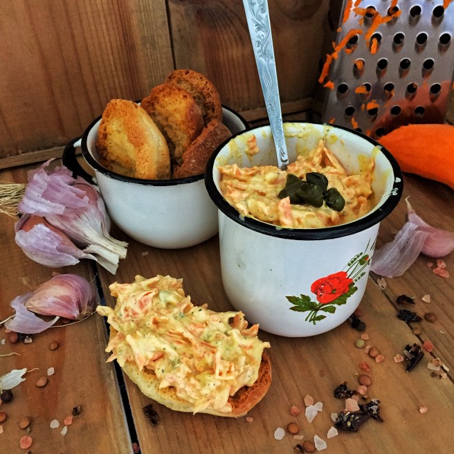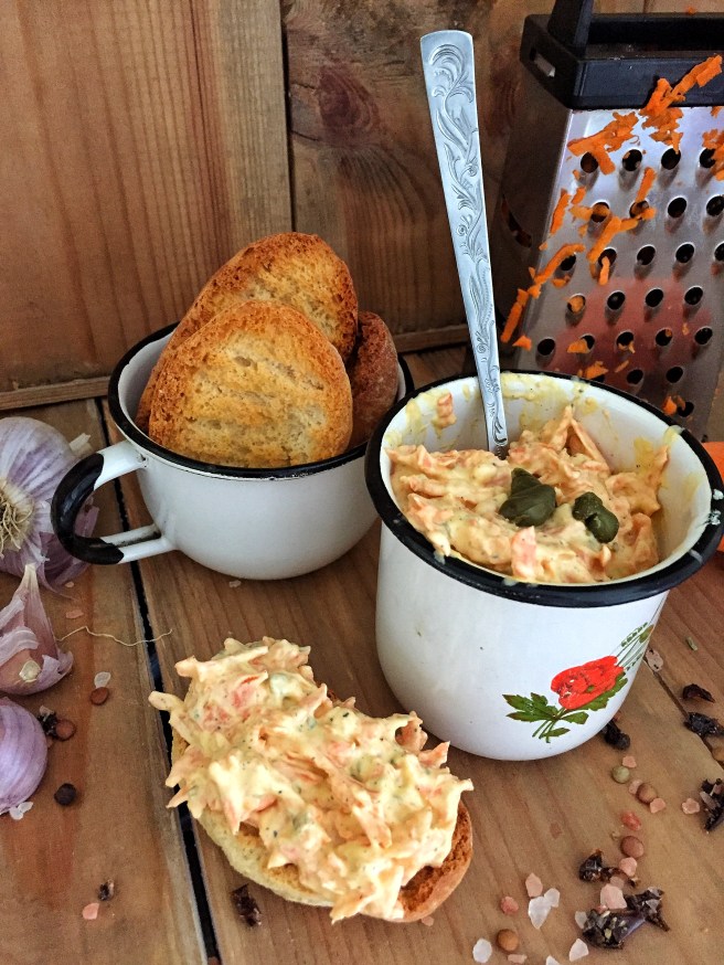 4. Соединяем морковь, чеснок, сливочный сыр, сметану, майонез, каперсы и кунжут.