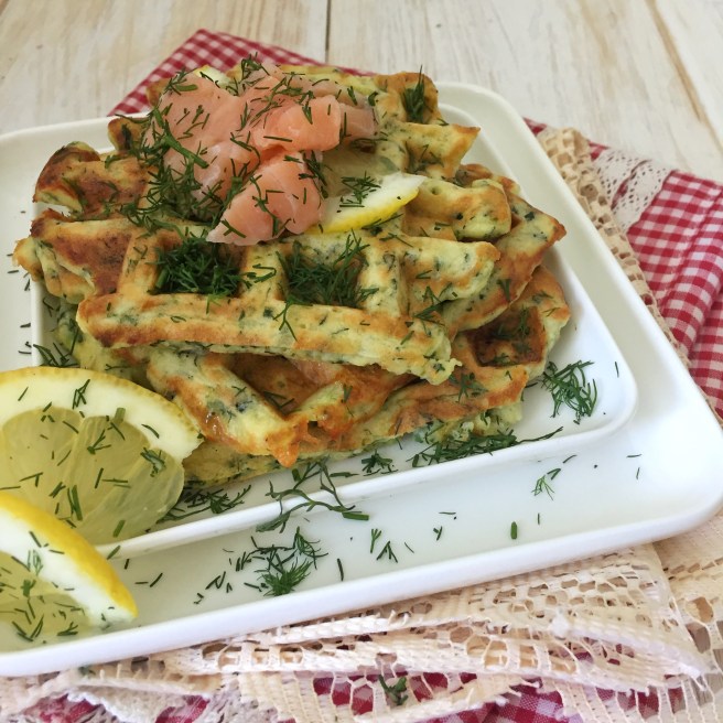 Другое дело выход за рамки привычных вкусов и ингредиентов. Так, смотря однажды передачу «Великий пекарь» (вот только не помню чего Австралии или Британии) по моему любимому кулинарному каналу, я увидела как там пекли вафли с разыми солеными вкусами. Были и с беконом и с картофелем и еще с чем-то, уже не помню. Потому что меня «зацепили» картофельные вафли со шпинатом и сыром. Шпинат я люблю, сыром не брезгую… А, почему бы не попробовать испечь, подумала я. И, таки испекла. Подавала их с соленой рыбкой и лимоном. Получились они невероятные. Вкусные, нежные и ароматные. Такие, которые долго не лежат, я бы даже сказала они не то что не лежали долго, они улетели быстрее, чем мне понадобилось времени на их приготовление. Спасибо хоть сфоткать успела.