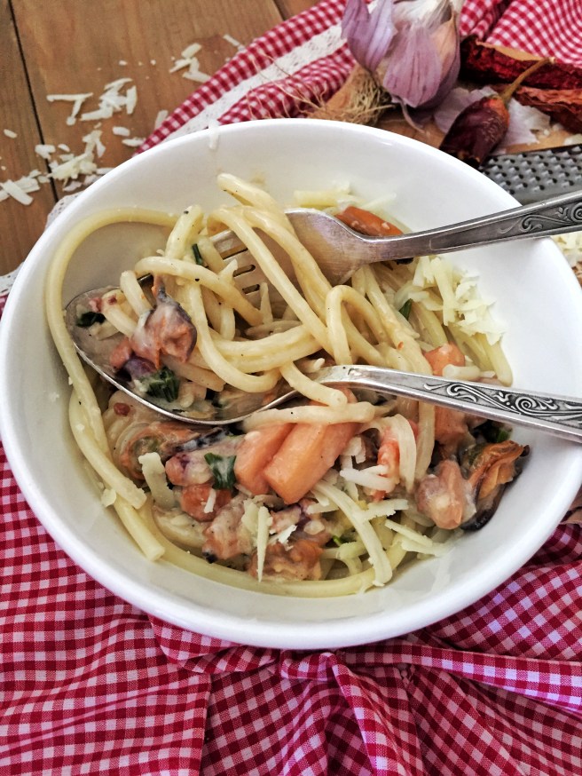 Спагетти с морепродуктами в сливочном соусе: 1 комментарий