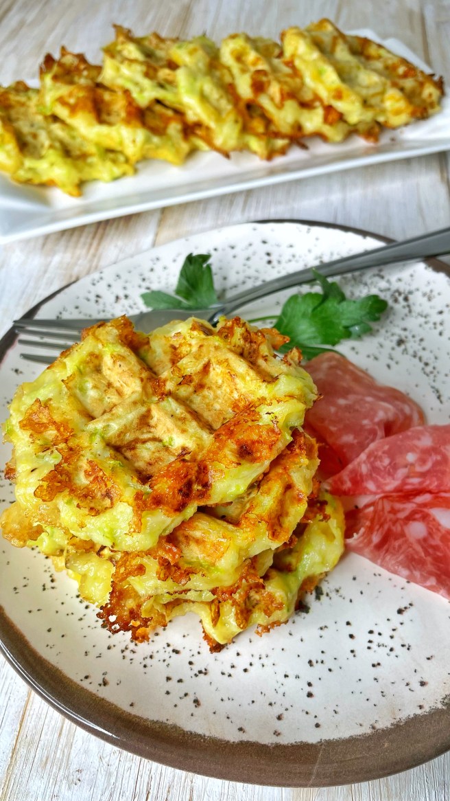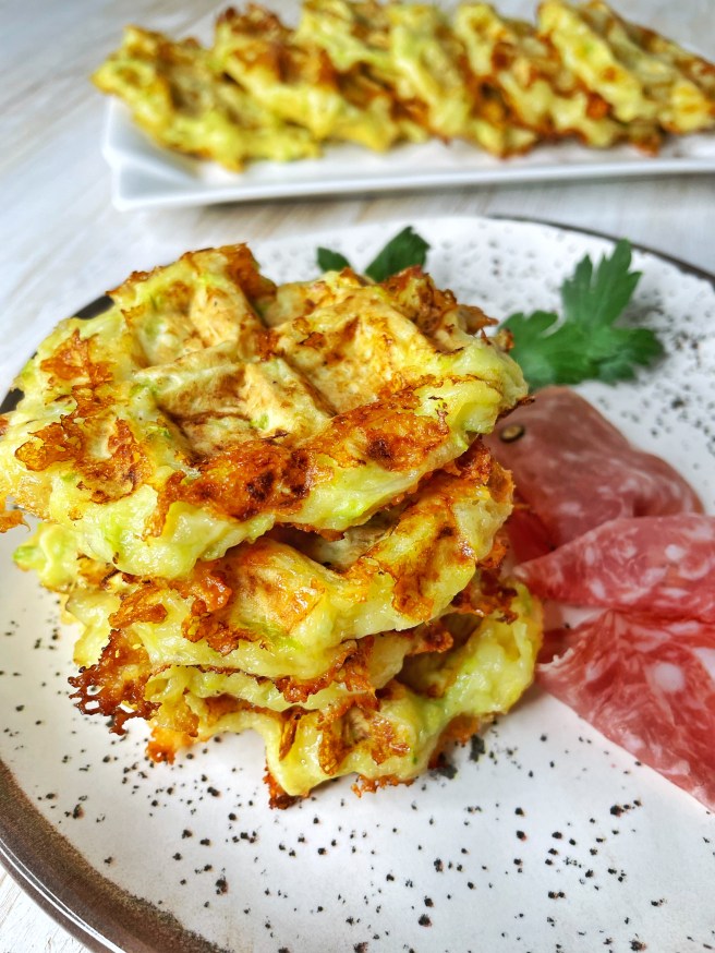 Один из самых моих любимых рецептов не сладких вафель. С одной стороны это как бы кабачковые оладьи, с другой жарятся без масла, единственный жир в них – это сыр, который придает тягучесть, мягкость, и в тоже время хрусткость.