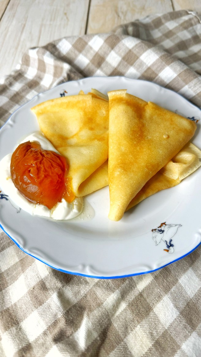Давно я засматривалась на этот рецепт, но, если честно очень уж сомневалась в том, что смогу нормально заварить тесто. На самом деле, сложно ничего в этом нет. Тесто на кипятке получается более гладким, а готовые блины более эластичными. Эти блины идеально подходят для фарширования, потому что не рвутся. Но, и для быстрого завтра они так же идеальны. Они нежные, воздушные и в меру тонкие.