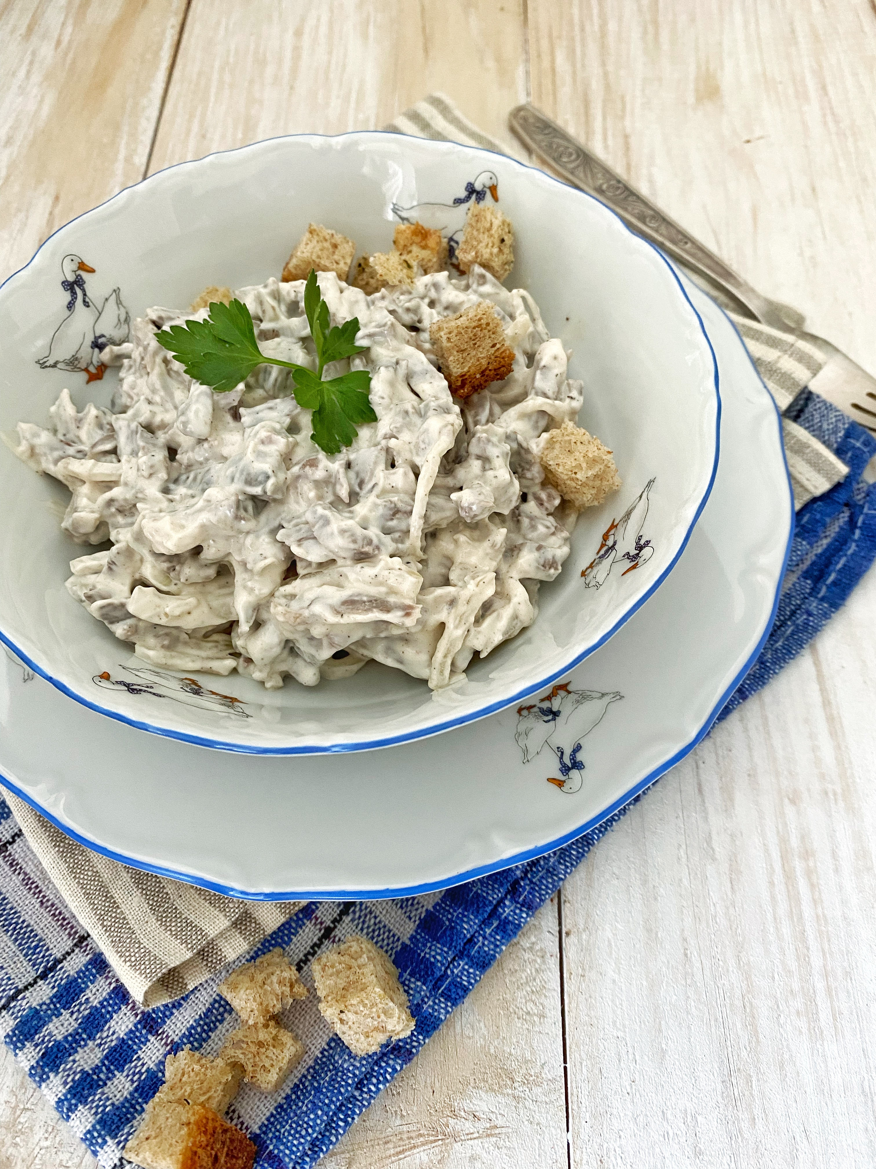 Салат из свиного или говяжьего сердца — это сытное, вкусное и недорогое блюдо, которое идеально подойдёт как на каждый день, так и для праздничного стола. Сердце обладает плотной, но нежной текстурой и нейтральным вкусом, поэтому отлично сочетается с маринованным луком и мягкой заправкой из майонеза. Этот салат особенно понравится любителям мясных закусок — он получается ароматным, питательным и в меру пикантным. Благодаря простоте ингредиентов и доступности продуктов, приготовить его сможет даже начинающий кулинар. Блюдо можно подавать охлаждённым, украсив зеленью, или использовать как начинку для бутербродов. Отлично сочетается с отварным картофелем или тостами. Такой салат часто удивляет гостей своим вкусом, ведь сердце здесь раскрывается совершенно по-новому.