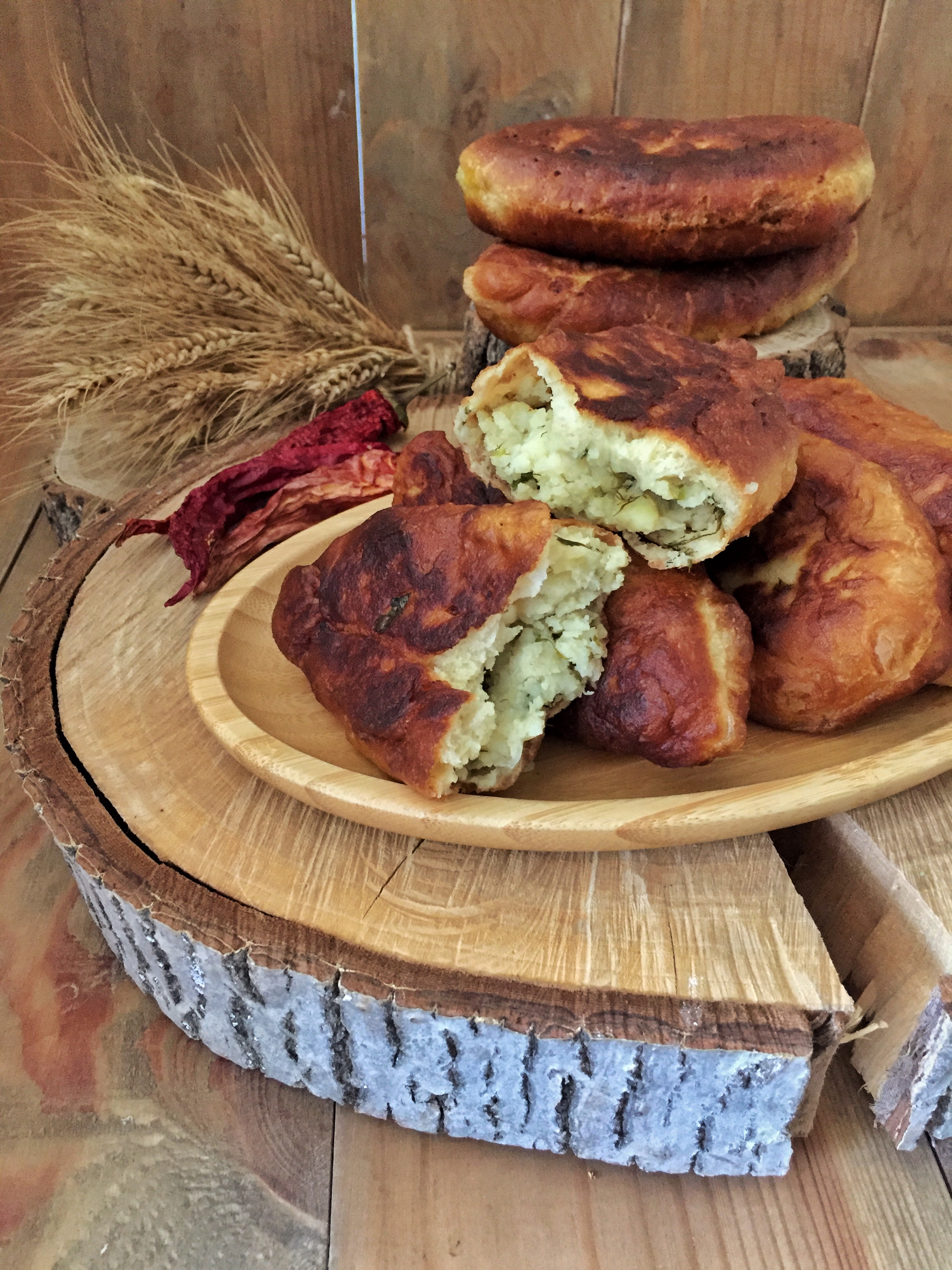 Сегодня в качестве начинки я использовала картофельное пюре, пробовали мы это тесто начинять тушеной капустой с грибами, тоже было очень вкусно. Думаю, к этому тесто подойдет любая не сладкая начинка. Сладкая, скорее всего будет вытекать при жарки. Но, это не точно, надо пробовать.
