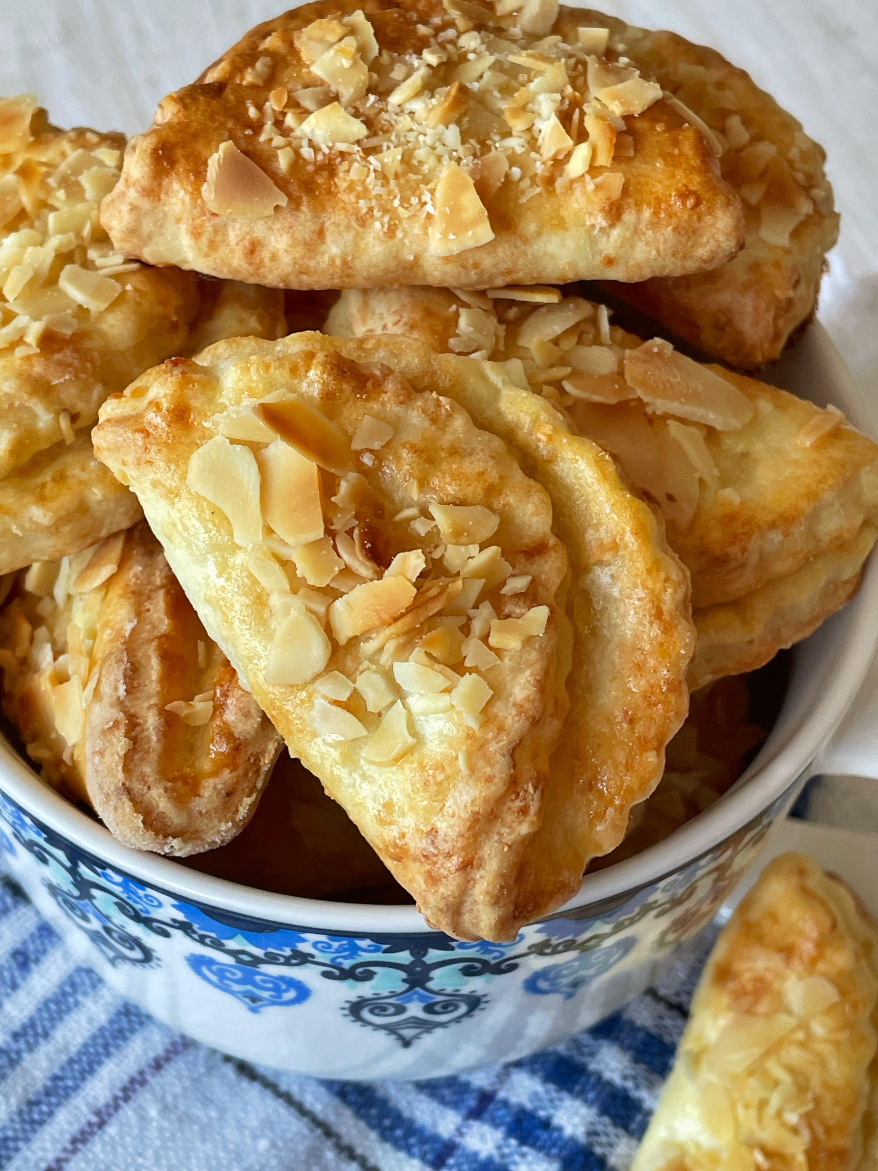 5. Выложите заготовки на противень с пергаментом, посыпьте миндальными лепестками и слегка прижмите.