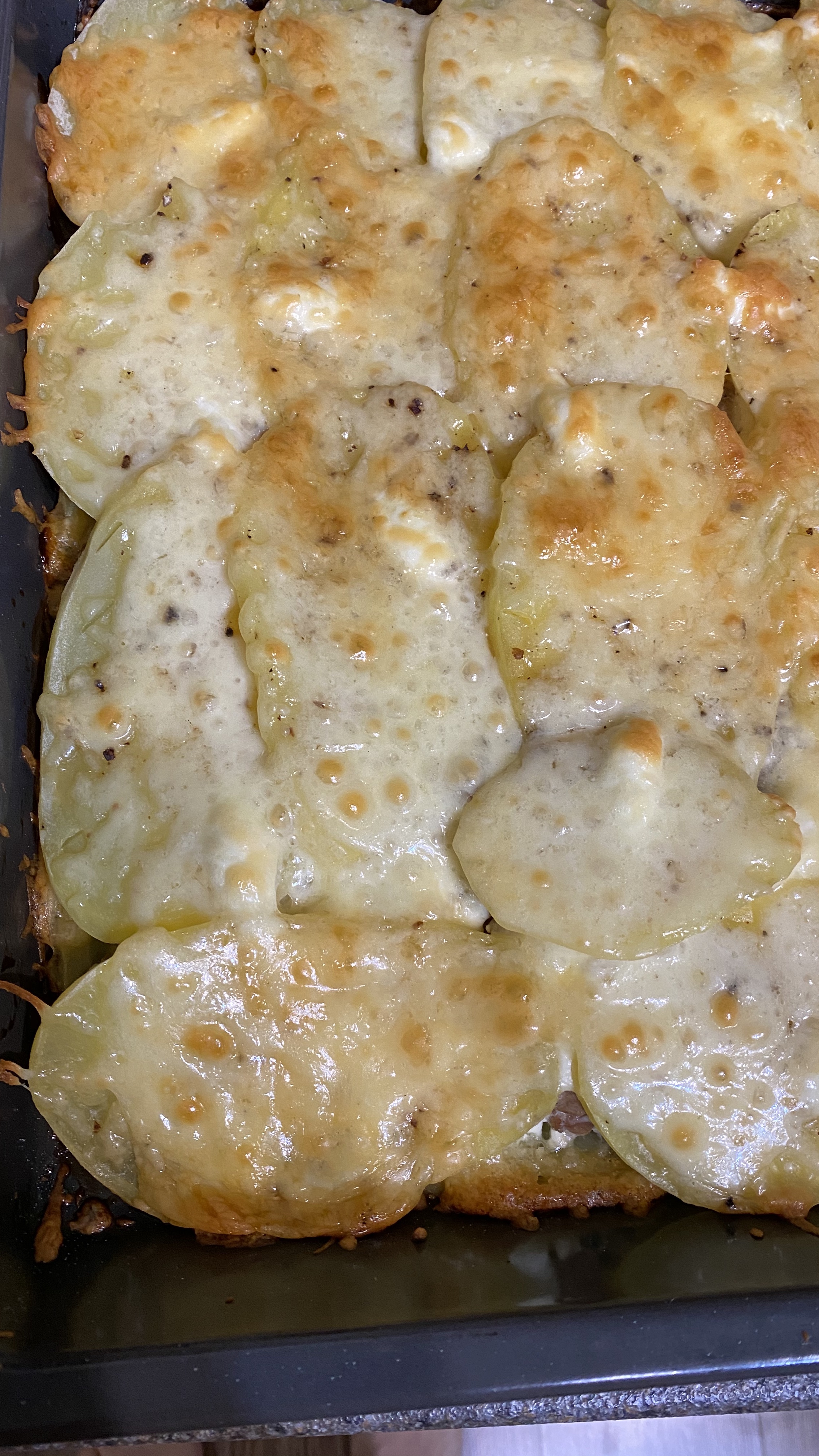 5. Сверху выложите второй слой картофеля и посыпте натёртым сыром.