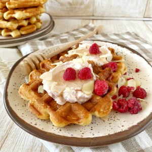 Начнем с того, что в книге рецептов к моей вафельнице есть два рецепта сладких квадратных вафель: венские и бельгийские. Когда мы ее только купили я была так ослеплена этими вафлями, что даже не обратила внимание какой из рецептов готовила. Вафли пеклись довольно быстро, были хрустящими, пышными, ароматными и невероятно вкусными. Потом было много других рецептов вафель, но обычно это были обычные тонкие вафли, которые я сворачивала или не сворачивала в трубочки.