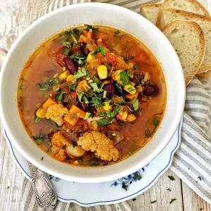 Суп по-мексикански — это ароматное и сытное блюдо с насыщенным вкусом и лёгкой остринкой. Он сочетает в себе кусочки говядины, овощи и пряности, создавая яркий и согревающий вкус, характерный для мексиканской кухни. Благодаря фасоли, кукурузе и томатам суп получается густым, питательным и отлично утоляет голод. Цветная капуста добавляет структуру и полезность, а специи — паприка, чили и тмин — придают блюду пикантность и глубину вкуса. Это идеальный вариант для прохладного дня, когда хочется чего-то горячего и насыщенного. Готовится суп довольно просто, а аромат в процессе варки наполняет дом уютом. Его можно подавать с тёртым сыром, тортильями или свежей зеленью для усиления мексиканского настроения.